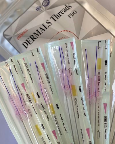 PDO Threads are surgical threads made from Polydioxanone which is a colourless, crystalline, and biodegradable synthetic polymer. Polydioxanone, the material in which the Threads are made of, once inserted into the skin tissue, ultimately lifts, tightens, and rejuvenates the overall condition and appearance of the skin. Our Threads are manufactured using the highest quality CE marked Polydioxanone.